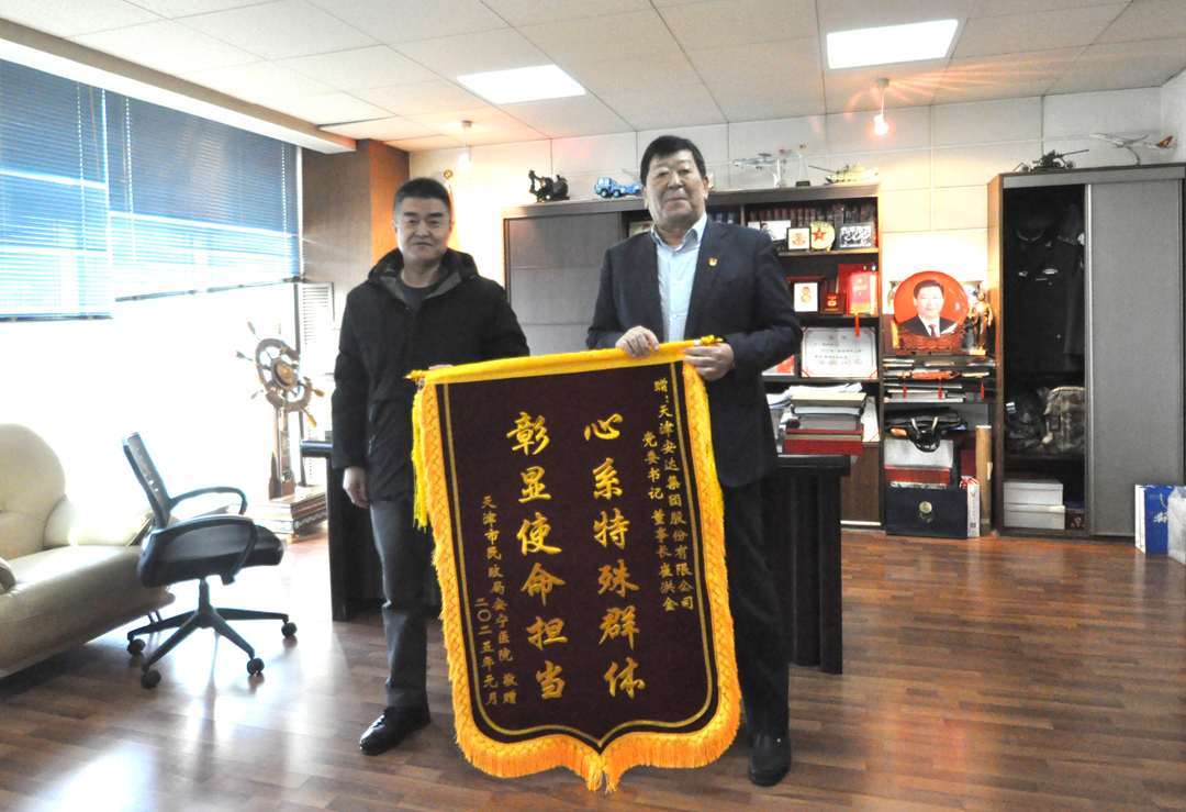 08日2025-01近日,安寧醫院副院長毛瑞軍一行專程來到安達集團,一場溫馨且充滿感恩的會面在此展開。毛院長手持一面繡有“心系特殊群體 彰顯使命擔當”字樣的錦旗,鄭重地遞交到安達集團黨委書記、董事長、天津市楊兆蘭慈善基金會副會長崔洪金手中。毛院長滿懷感激地表示,多年來,安達集團及楊兆蘭慈善基金會始終心系安寧...[查看詳情]